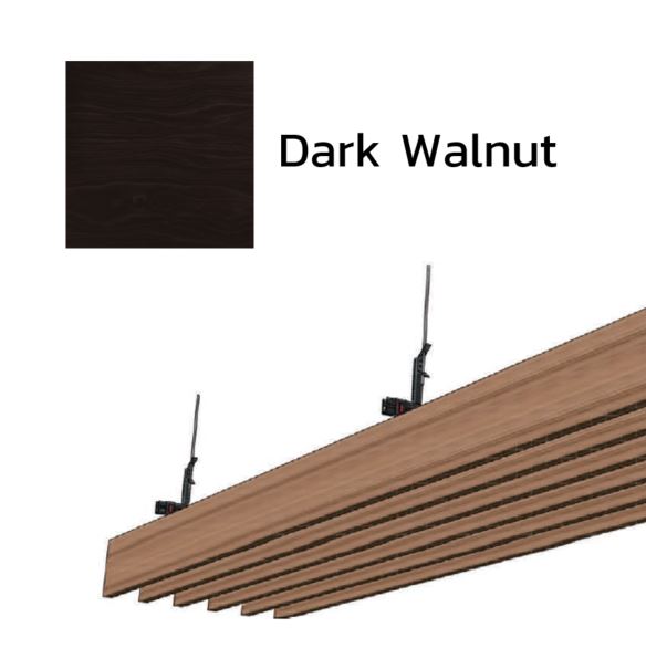Armstrong Metalworks Aluminum Baffle Ceiling Dark Walnut is available in size 25x100 and 25x150 with length 3600 mm. Giving more luxurious look, the baffle is recommended for indoor ceiling installation as the aluminium is lightweight, rustproof and this baffle ceiling system is also easy to be installed and renovated.