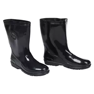Flying saucer shaped boots, 14 inches tall, size 11, black.
