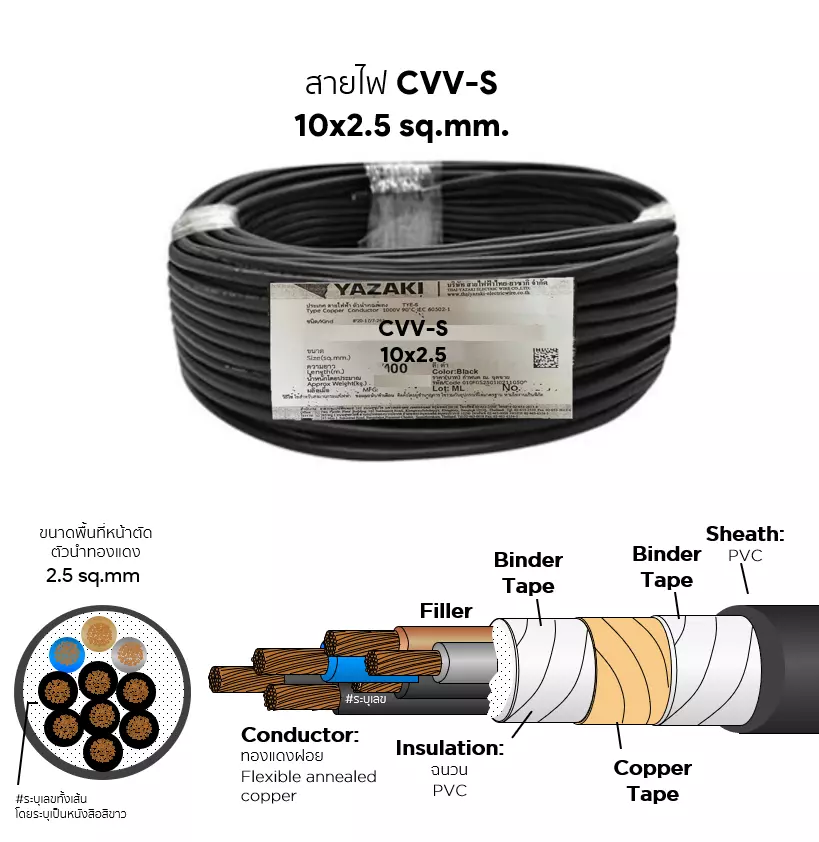 cvv s cable 10x25 sqmm yazaki cvv wire yazaki yazakiCVV-S cable 10x2.5 sq.mm. YAZAKIYazaki