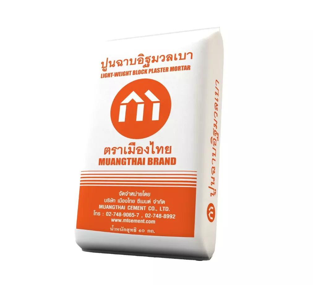Mueng Thai Cement Plastering 40 kg can be used very well with THAICON light weight brick. Thickness plastering 5 mm, can be used for 4-5 sqm. Thickness plastering 10 mm, can be ...