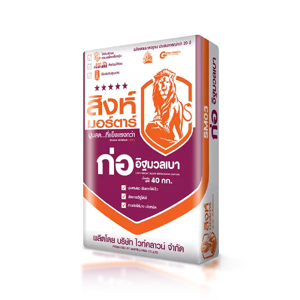 Mueng Thai Cement Layering 40 kg can be used very well with THAICON light weight brick. The usage is 16-25 sqm/bag with 3-4 mm thickness