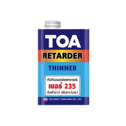 TOA Retarded Thinner #T235 is a solvent suitable for mixing with lacquer, polyurethane and industrial lacquer. Enhancing using paints in humid area such as raining area. Availab...