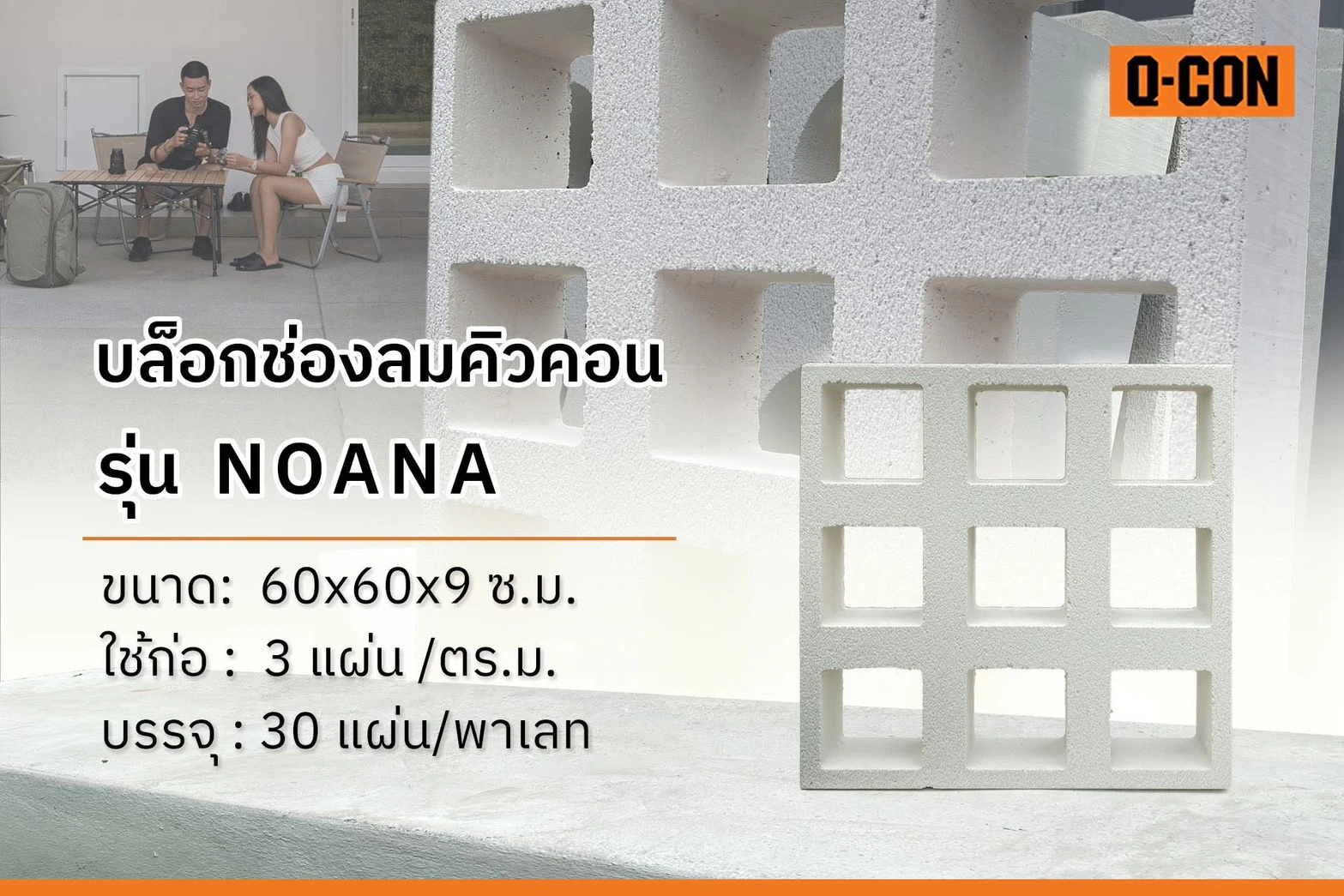 อิฐบล็อกช่องลม Q-CON รุ่นอีซี่ ลายจตุรัสซ้อน เพิ่มดีไซน์ให้บ้าน ระบายอากาศดีเยี่ยม ทนทาน แข็งแรง คุ้มค่า ส่งตรงทั่วไทย